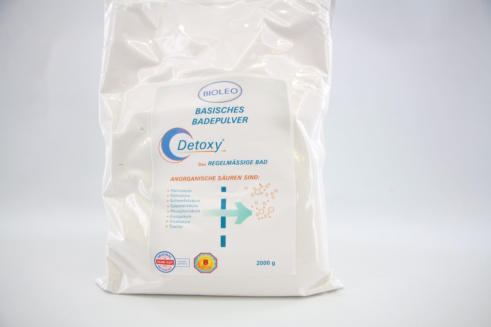 Ergiebige 2000 g Packung: Eine Packung BIOLEO Detoxy Basenpulver mit 2000 g reicht – je nach Dosierung – für rund 10 intensivere Vollbäder.